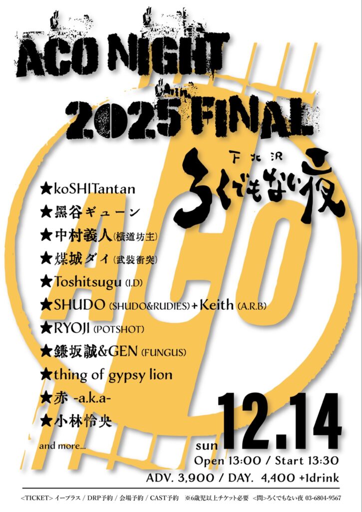 前売:3,900円 / 当日:4,400円 (ドリンク代別途)